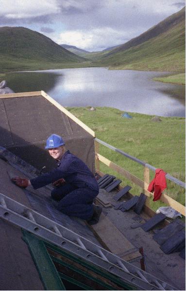 it was back to nailing slates on again. Slating the back roof was more